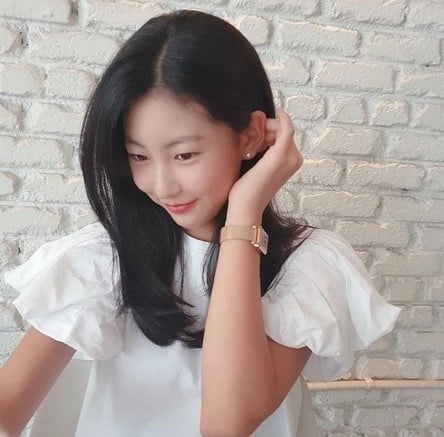 공개된 사진 속 송지아는 흰 티셔츠에 어깨까지 내려오는 생머리를.