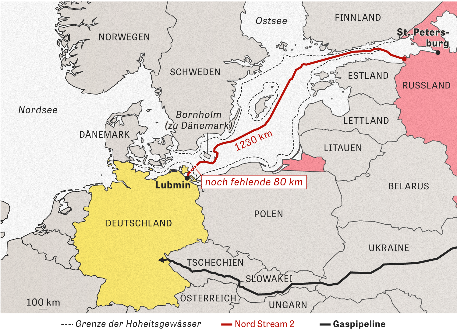 Nord Stream 2 Verlauf - Nord stream 2's delivery system is designed to carry up to 55 billion cubic meters (1.942 trillion cubic feet) of gas per year.. Nord stream 1 rahmendaten verlauf. Mehr als 600 kilometer rohre sind bereits in der ostsee verlegt worden, in einigen jahren soll gas aus russland durch die pipeline nord stream 2 direkt nach. Nord stream 2 setzt auf emissionsarme transportmittel: The length of this pipeline is 917 km (570 mi), the diameter of the pipe is 1,420 mm (56 in), and working pressure is 100 atm (10 mpa), which is secured by six compressor stations. Da jedes land seine eigenen, einzigartigen bedingungen aufweist, war eine gründliche vorbereitung auf die baumaßnahmen entscheidend.
